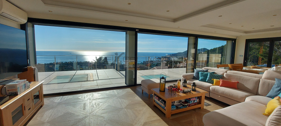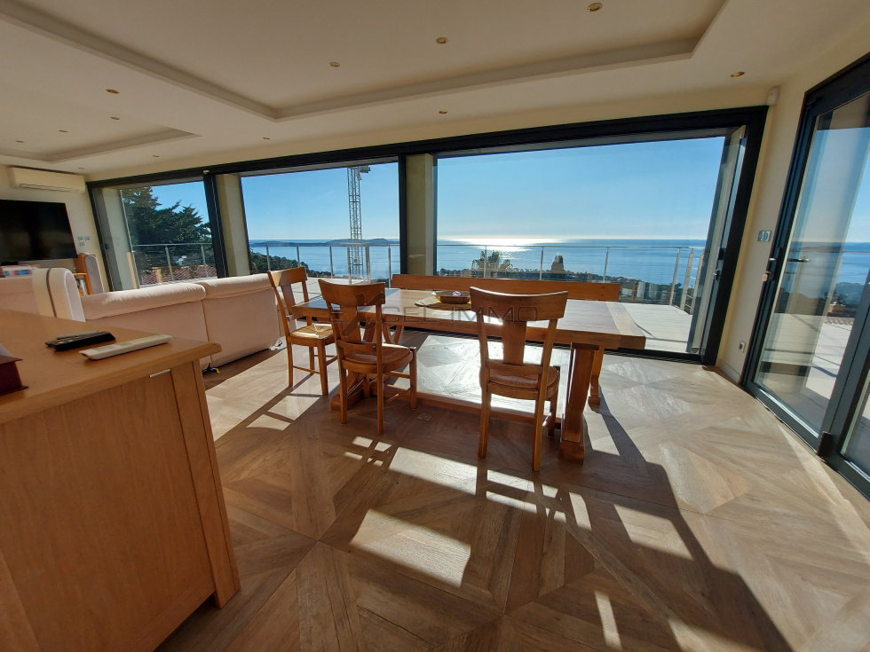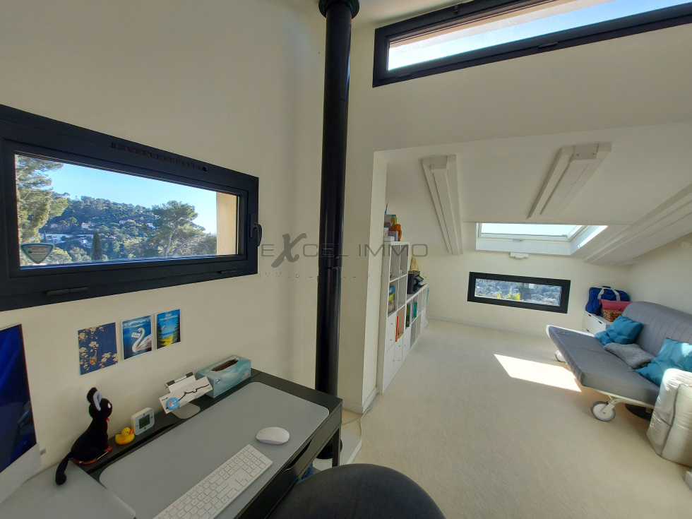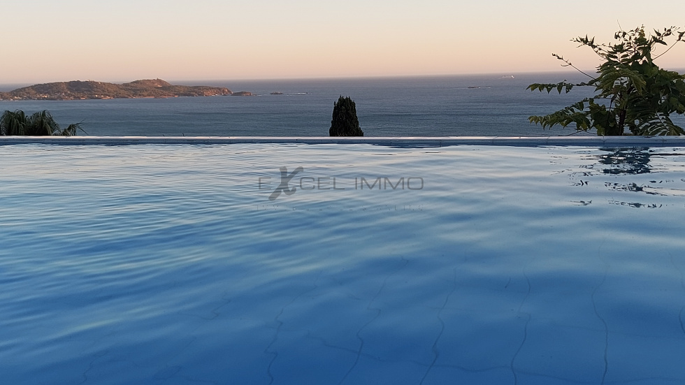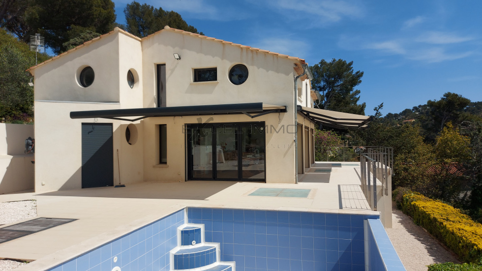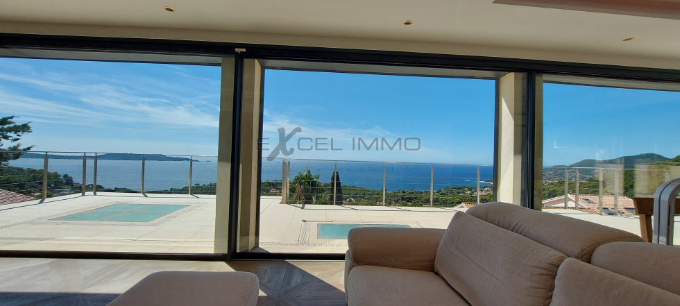 Au coeur d'un domaine privé, villa exception d'une surface de 250 m² habitables , bénéficiant d'une superbe vue mer . Elle offre un superbe séjour salon avec vue panoramique , très grandes baies vitrées, accès direct aux nombreuses terrasses . Cuisine de marque entièrement équipée . 3 suites dont une avec dressing . 4 autres pièces supplémentaires : chambres , bureau , salle de sport et salle d'eau avec douche et wc .Prestations premium .terrain clos avec piscine à débordement . Vaste garage pour deux ou trois voitures .